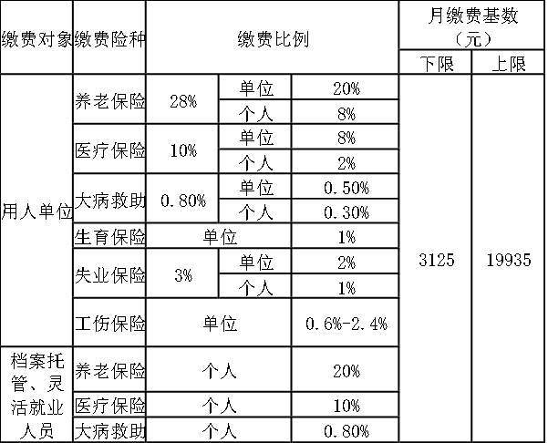 2.根据有关文件精神,目前用人单位阶段性降低养老、失业、生育保险费率。实际用人单位养老保险征缴比例为单位19%,个人8%;失业保险征缴比例为单位0.5%,个人0.5%;生育保险征缴比例为单位0.5%。