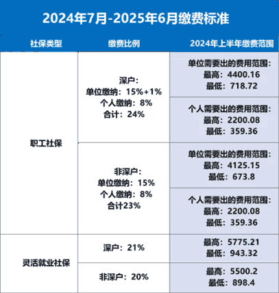 2024年12月起,深圳职工养老保险缴费基数上下限由【3523元-26421元】调整为【4492元-27501元】,由于这个新的基数上下限执行时间为2024年7月至2025年6月,对于因延后调整缴费基数上下限而产生的2024年7月至11月养老保险费差额,后续待广东省进一步明确后再行处理。